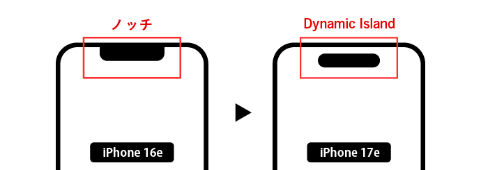 現時点でのリーク情報によれば、iPhone 17eではノッチが廃止され、Dynamic Islandが採用されるかもしれません。